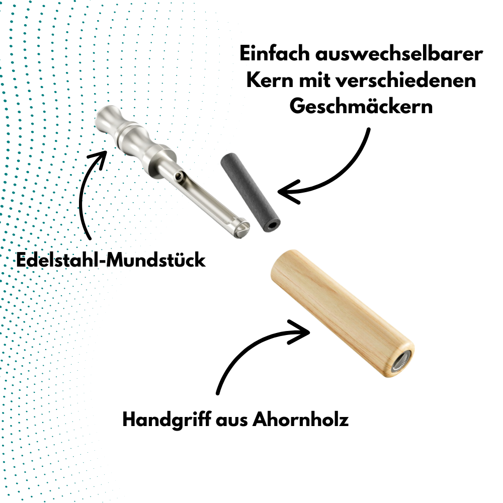 Die Wissenschaft zeigt: Gewohnheiten radikal zu brechen, ist für unser Gehirn oft eine echte Herausforderung. Nevo hilft dir, sanft umzusteigen – indem es das vertraute Hand-zu-Mund-Ritual erhält, Unruhe durch Bewegung beruhigt und dich mit natürlichen Aromen auf neue Gedanken bringt. Kein Druck. Kein Zwang. Nur eine bessere Gewohnheit.